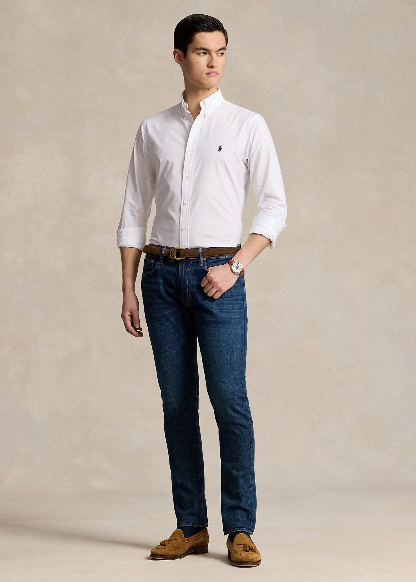 ð¡ Această cămașă Ralthtph Lauthtren are o croială ajustată și se potrivește normal, alegeți mărimea dumneavoastră obișnuită. Gabriel măsoară 1m85 și poartă mărimea M.