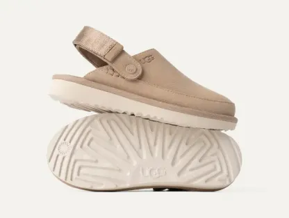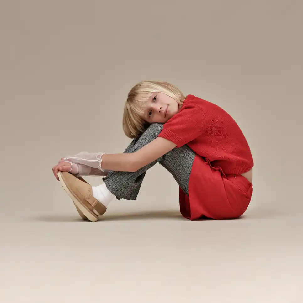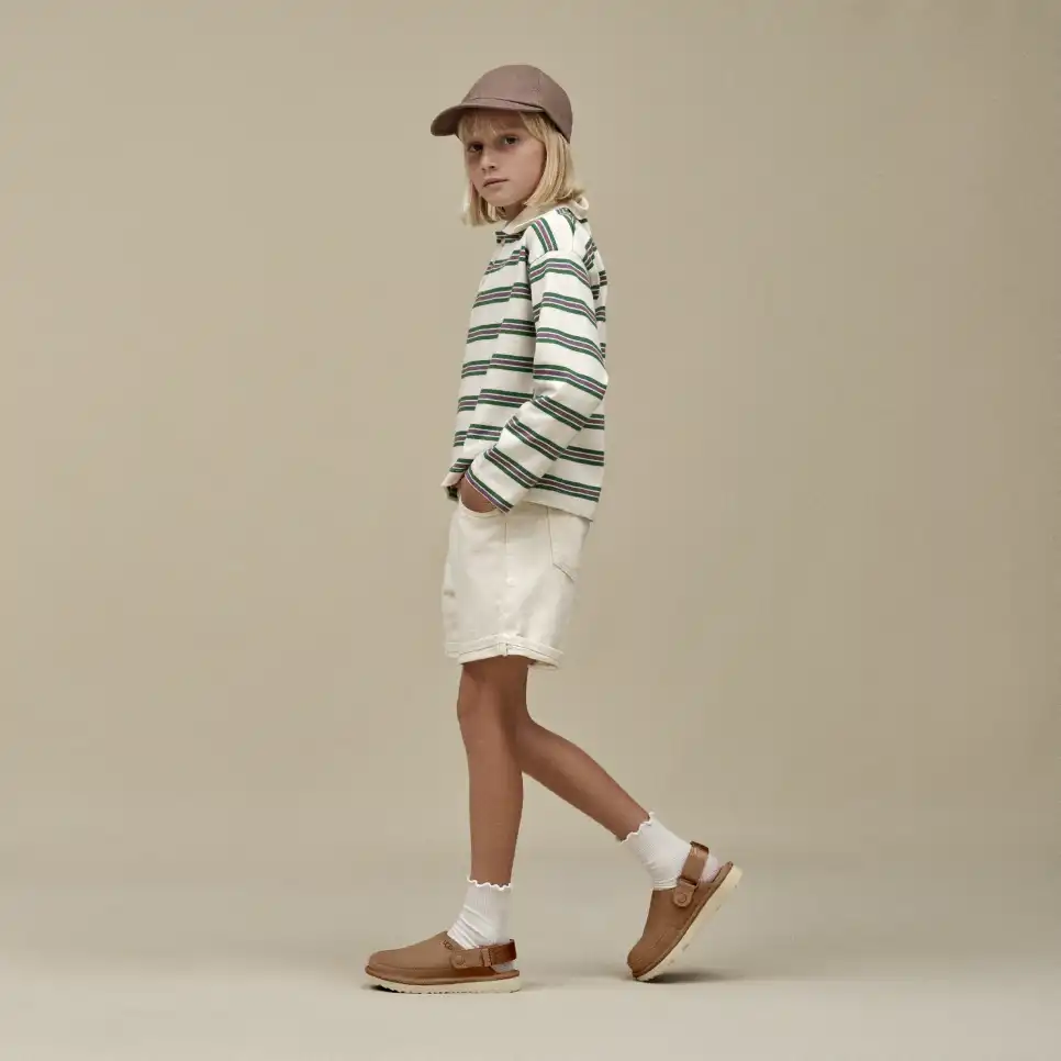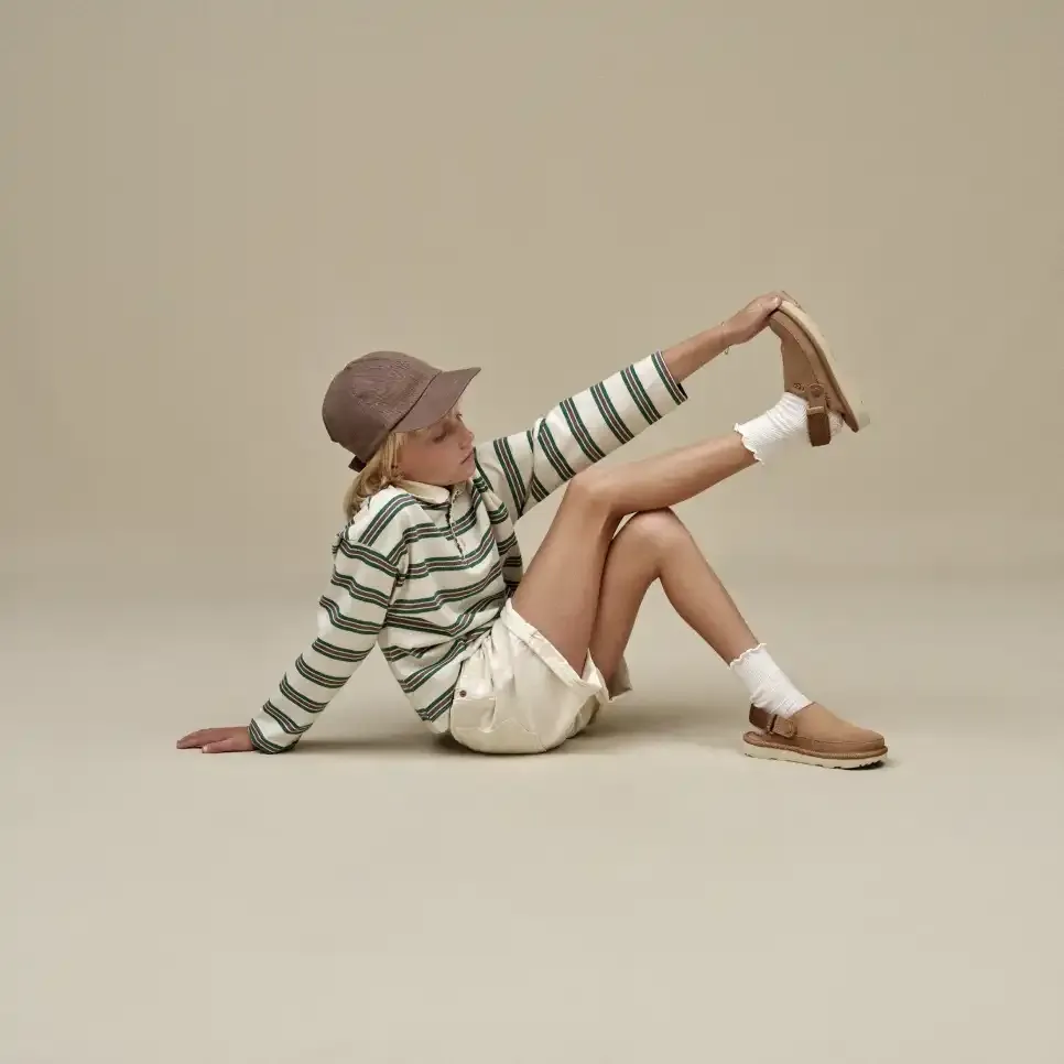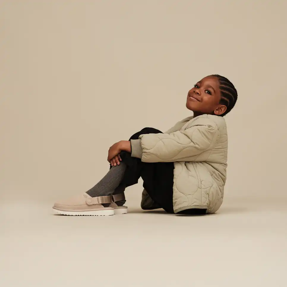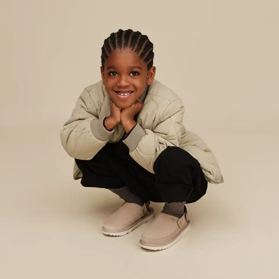 Inspired by our UGG® Classic Boot, our Goldencoast Clog is made with the same elements of comfort and versatility. We designed these with our smooth suede upper and lightweight sugarcane EVA outsole. An anti-odor-treated textile lining helps keep little feet fresh, while our adjustable heel strap helps these slip-ons stay put. A style for the whole family, The Golden Collection by UGG® is available in Men's, Women's, and now, Kids'.