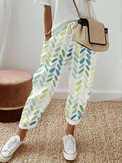Pantaloni de lounge cu imprimeu de frunze în acuarelă pentru femei