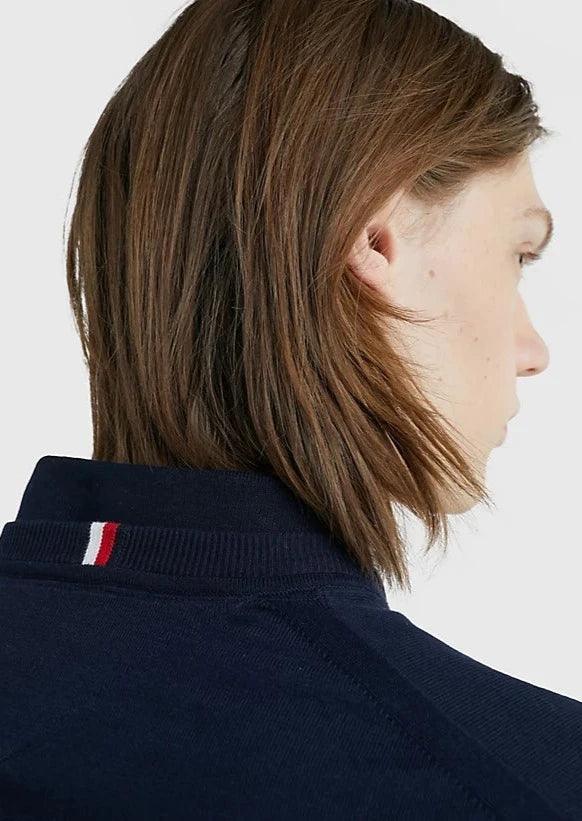 - Steagul Tomthtmy Hilfithtger brodat pe piept și la spatele gulerului.