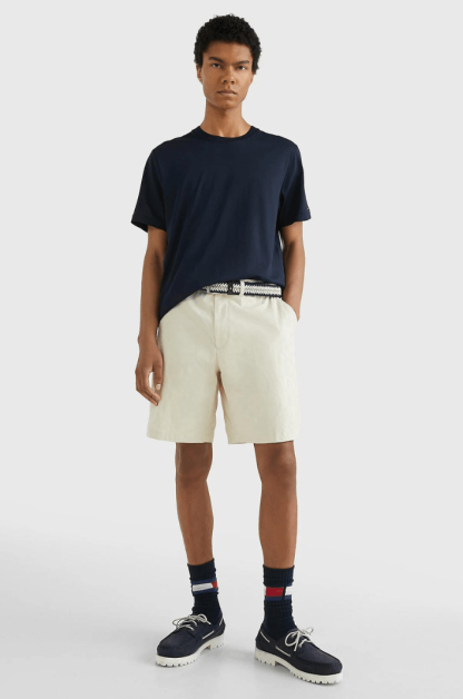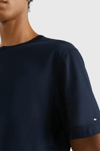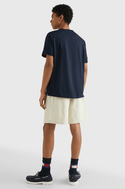 - Logo mic Tomthtmy Hilfithtger brodat pe mânecă.